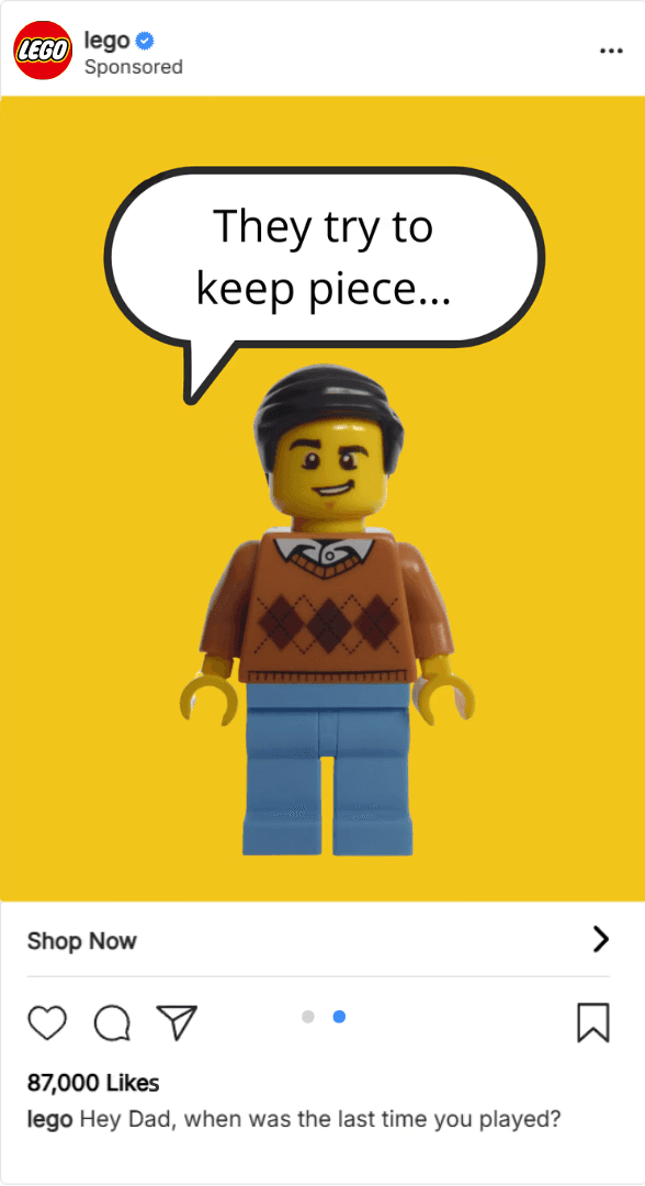 The final outcome was a playful campaign that used dad jokes as a narrative device, visually reinforced through LEGO builds, punchy typography, and a bright, digital-first storytelling.